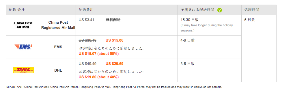 中国の郵便を使えば無料でやってくれる出品者が多いようです。