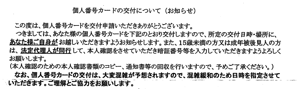 マイナンバーカード受け取り