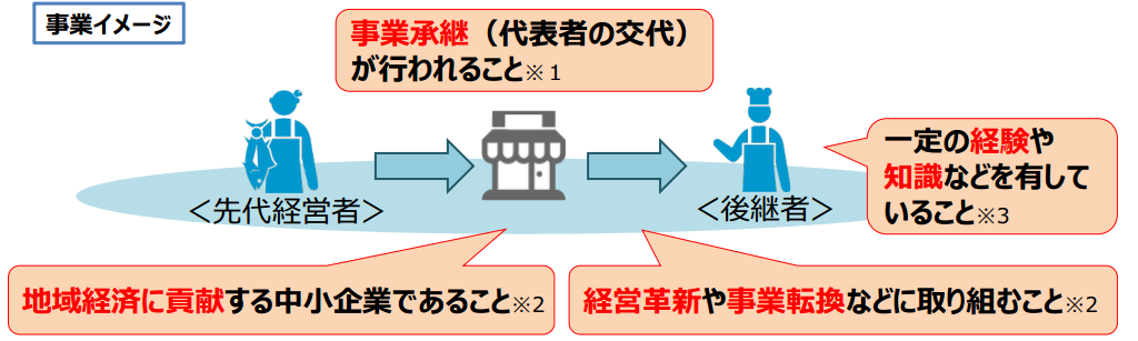 事業継承補助金は下記の条件にあった取り組みについて支援をするための補助金です。