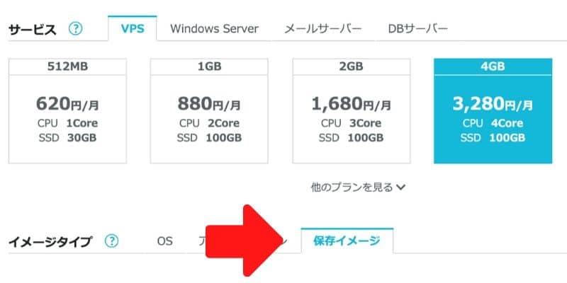 そこで作ったイメージ保存を下記のように新たなVPSを立ち上げる際に保存イメージを選択して、サーバーを作成すればよいだけです。