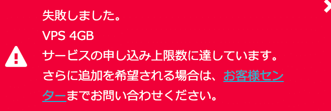ConohaVPSにはサービスの申し込み上限なるものが存在するようなのです。